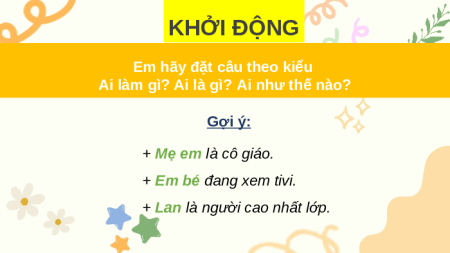 Ai làm gì? Ai là gì? Ai như thế nào? Gợi ý: