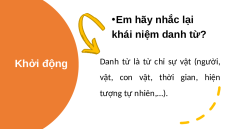 Chào mừng các em đến với tiết học hôm nay •Em hãy nhắc lại khái niệm danh từ? Khởi động