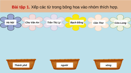 Bài tập 1. Xếp các từ trong bông hoa vào nhóm thích hợp.