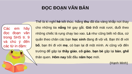 thân quen. Hôm nay bắt đầu năm học mới.