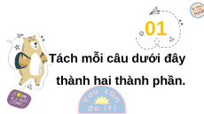 1. Tách mỗi câu dưới đây thành hai thành phần.