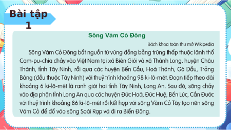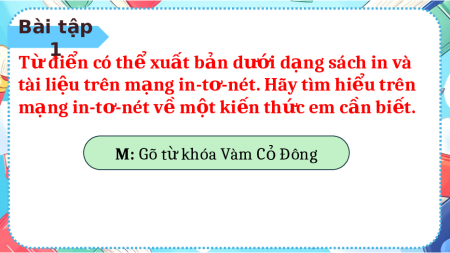 ơ nét. Hãy tìm hi u ể trên m n ạ g in-t - ơ nét v ề m t ộ ki n ế th c ứ em c n ầ bi t ế . M: Gõ t kh ừ óa Vàm Cỏ Đông