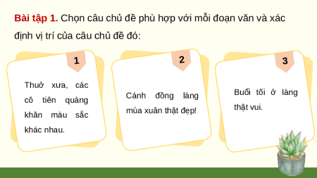 Chọn và xác định vị trí của câu chủ đề