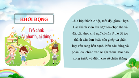 đặt câu theo chủ ngữ có sẵn ở thẻ để tạo