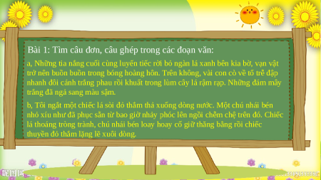 Bài 1: Tìm câu đơn, câu ghép trong các đoạn văn: