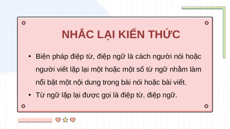• Biện pháp điệp từ, điệp ngữ là cách người nói hoặc