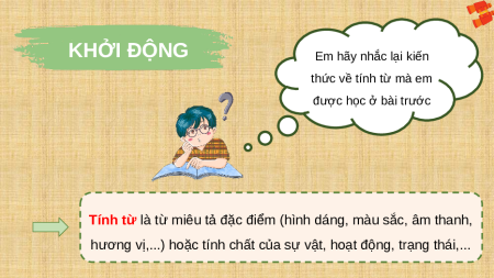 BÀI HỌC NGÀY HÔM NAY! KHỞI ĐỘNG Em hãy nhắc lại kiến thức về tính từ mà em