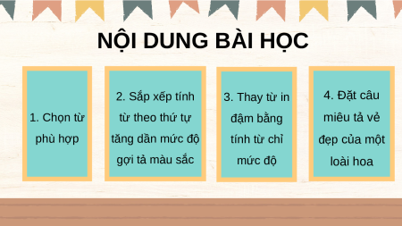 - Bộ bài giảng powerpoint Tiếng việt lớp 4 Học kì 1 Chân trời sáng tạo bao gồm đầy đủ các bài giảng trong cả năm. Bộ bài giảng được thiết kế theo phong cách hiện đại, đẹp mắt, trình bày chi tiết cho từng phần học và bám sát chương trình Sách giáo khoa Tiếng việt lớp 4 Chân trời sáng tạo.