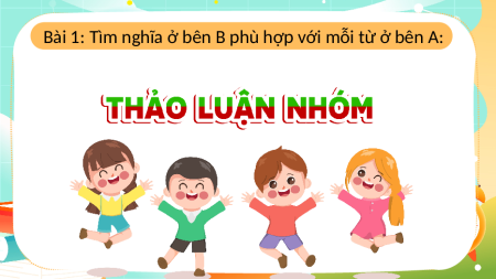 Bài 1: Tìm nghĩa ở bên B phù hợp với mỗi từ ở bên A: