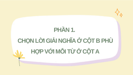 01 Chọn lời giải nghĩa ở cột B phù hợp với mỗi từ ở cột A