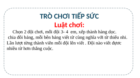 chia đôi bảng, mỗi bên bảng viết từ cùng nghĩa với từ thiếu nhi.