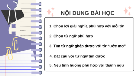 MỞ RỘNG VỐN TỪ VỀ “ƯỚC MƠ” NỘI DUNG BÀI HỌC