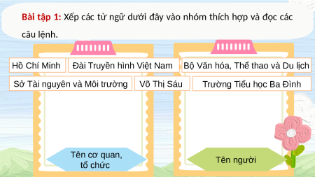 01 Sắp xếp các từ ngữ vào nhóm thích hợp