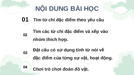 01 Tìm từ chỉ đặc điểm theo yêu cầu