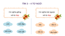 Tìm từ ngữ thuộc chủ đề Cái đẹp 02 Xếp các từ vào hai nhóm 03