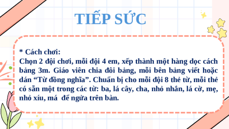 dán “Từ đồng nghĩa”. Chuẩn bị cho mỗi đội 8 thẻ từ, mỗi thẻ