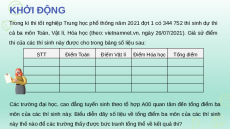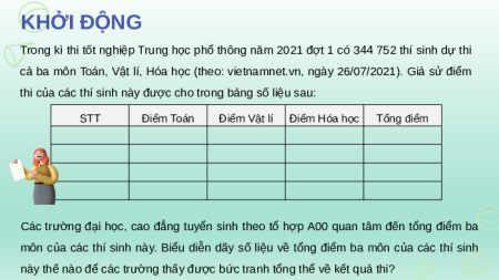 thi của các thí sinh này được cho trong bảng số liệu sau: STT Điểm Toán Điểm Vật lí Điểm Hóa học Tổng điểm
