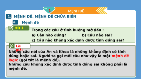 1. MỆNH ĐỀ. MỆNH ĐỀ CHỨA BIẾN a. Mệnh đề HĐ 1