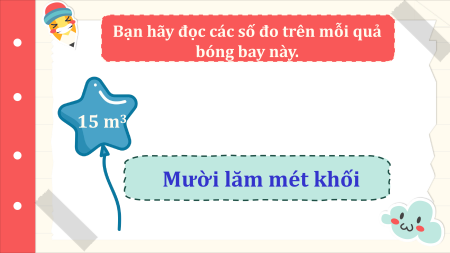 Bạn hãy đọc các số đo trên mỗi quả bóng bay này. bóng bay này. 15 m3