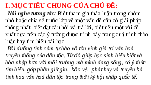 I. MỤC TIÊU CHUNG CỦA CHỦ ĐỀ: