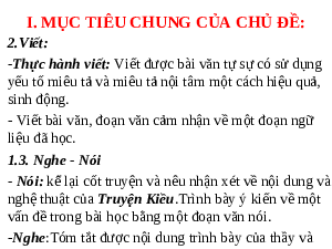 I. MỤC TIÊU CHUNG CỦA CHỦ ĐỀ: 2.Viết: