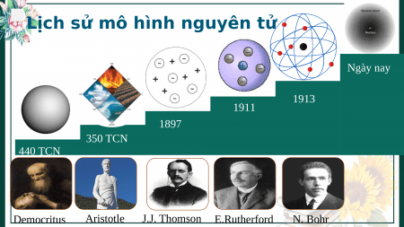 Lịch sử mô hình nguyên tử Ngày nay 1913 1911 1897 350 TCN 440 TCN Democritus Aristotle J.J. Thomson E.Rutherford N. Bohr Bài 4: Mô hình nguyên tử và o Sách : rbita Cánh diều l nguyên tử