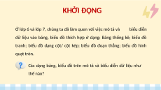 tranh; biểu đồ dạng cột/ cột kép; biểu đồ đoạn thẳng; biểu đồ hình quạt tròn.