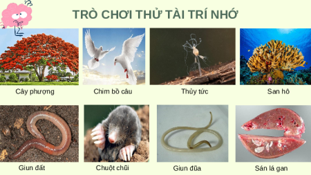 TRÒ CHƠI THỬ TÀI TRÍ NHỚ Cây phượng Chim bồ câu Thủy tức San hô Giun đất Chuột chũi Giun đũa Sán lá gan TRẢ LỜI