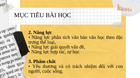 văn bản; phát hiện được các giá trị đạo đức, văn hoá từ văn bản. MỤC TIÊU BÀI HỌC 2. Năng lực