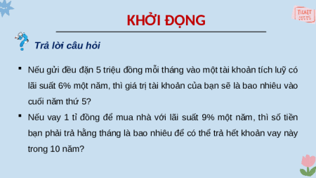 Giáo án Powerpoint Một vài áp dụng của toán học trong tài chính Toán 11 Kết nối tri thức