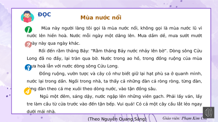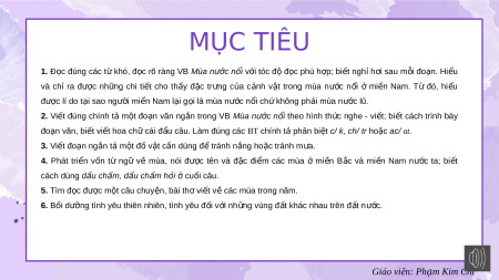 và ch ra đ c nh ng chi ti t cho th y đ c tr ng c a c nh v t trong mùa n c n i mi n Nam. T đó, hi u ỉ ượ ữ ế ấ ặ ư ủ ả ậ ướ ổ ở ề ừ ể