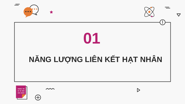 Năng lượng liên kết hạt 01 nhân Sự phân hạch và sự 02 tổng hợp hạt nhân 03 Công nghiệp hạt nhân