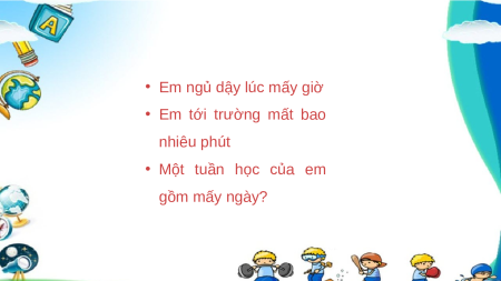 • Em ngủ dậy lúc mấy giờ