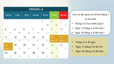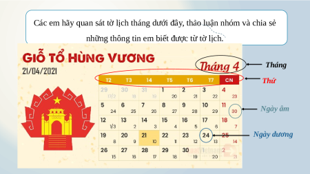 Các em hãy quan sát tờ lịch tháng dưới đây, thảo luận nhóm và chia sẻ