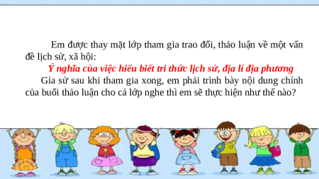 Em được thay mặt lớp tham gia trao đổi, thảo luận về một vấn đề lịch sử, xã hội: