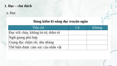 Bảng kiểm kĩ năng đọc truyện ngắn