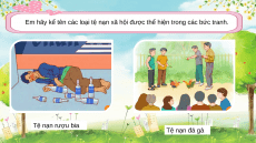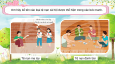 Em hãy kể tên các loại tệ nạn xã hội được thể hiện trong các bức tranh.