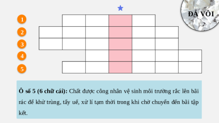 Ô số 5 (6 chữ cái): Chất được công nhân vệ sinh môi trường rắc lên bãi
