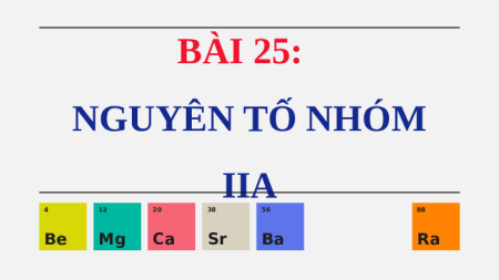 . năng đông cứng trong không khí. kết. BÀI 25: NGUYÊN TỐ NHÓM IIA 4 12 20 38 56 88 Be Mg Ca Sr Ba Ra