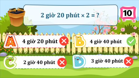và dụng cụ cần thiết để trồng cây nhé! * 1 0,5 2 4 * 4 giờ 20 phút 4 giờ 40 phút 2 giờ 40 phút 3 giờ 40 phút
