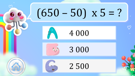 . Hãy giúp ta tưới nước với bài học hôm cho các ch nay ậu nhé cỏ ! này nhé ! 200 + 200 x 2 =? 600 800 700 (650 – 50) x 5 = ? 4 000 3 000 2 500
