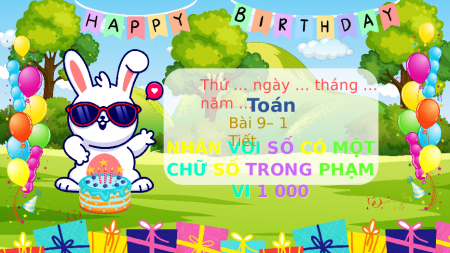 Thứ … ngày … tháng … năm …Toán Bài 9– 1 NHÂN NHÂN VỚI Tiết SỐ SỐ CÓ MỘT ỘT CHỮ SỐ SỐ TRONG TRONG PHẠM PHẠM VI VI 1 1 00 000 Kiến thức, kĩ năng: