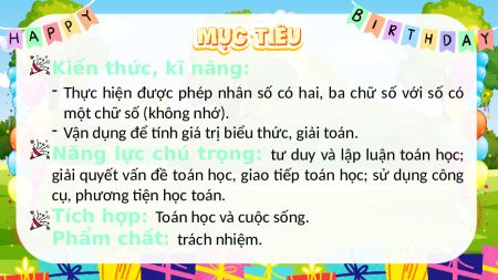 - Thực hiện được phép nhân số có hai, ba chữ số với số có