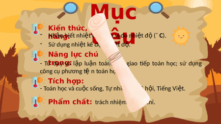 Thứ … ngày … tháng … TO n ÁN TOÁ ăm … N NHIỆT ĐỘ. ĐO NHIỆT ĐỘ (1 tiết) Mục Kiến thức, - Nhận biết nhiệ ệ tiêu kĩ năng: t đ , ộ đơn vị đo nhi t ệ đ ( ộ ˚ C).