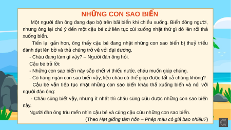 nh ng con sao bi n b m c c n trên b bi n, cu c trò chuy n c a ng i đàn ông v i c u bé).ữ ể ị ắ ạ ờ ể ộ ệ ủ ườ ớ ậ