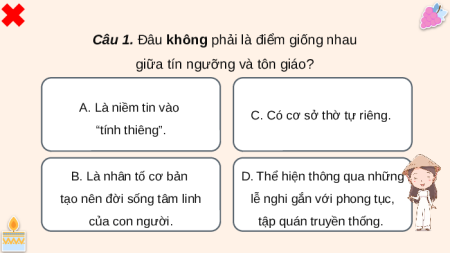 giữa tín ngưỡng và tôn giáo? A. Là niềm tin vào