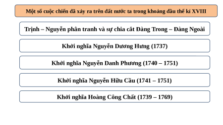 Một số cuộc chiến đã xảy ra trên đất nước ta trong khoảng đầu thế kỉ XVIII