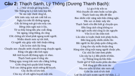 Câu 2: Thạch Sanh, Lý Thông (Dương Thanh Bạch):