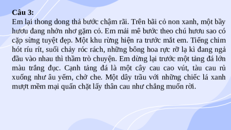 hót ríu rít, suối chảy róc rách, những bông hoa rực rỡ lạ kì đang ngả