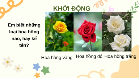 ĐẾN VỚI TIẾT HỌC MỚI KHỞI ĐỘNG Em biết những loại hoa hồng nào, hãy kể tên?